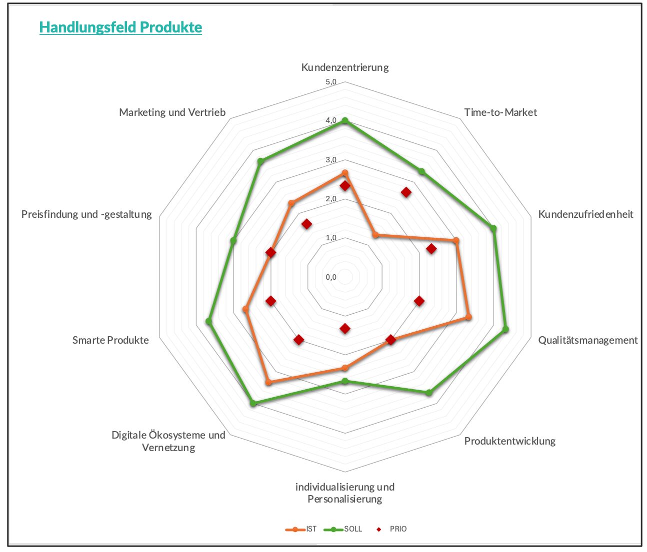 Der Digital Capability Navigator für Produktmanagement macht sichtbar, wie gut Ihre Organisation entlang der gesamten Produktwertschöpfung aufgestellt ist – von Produktstrategie und Kundenverständnis über agile Entwicklung bis hin zu Governance, Kommunikation und Lebenszyklusmanagement.